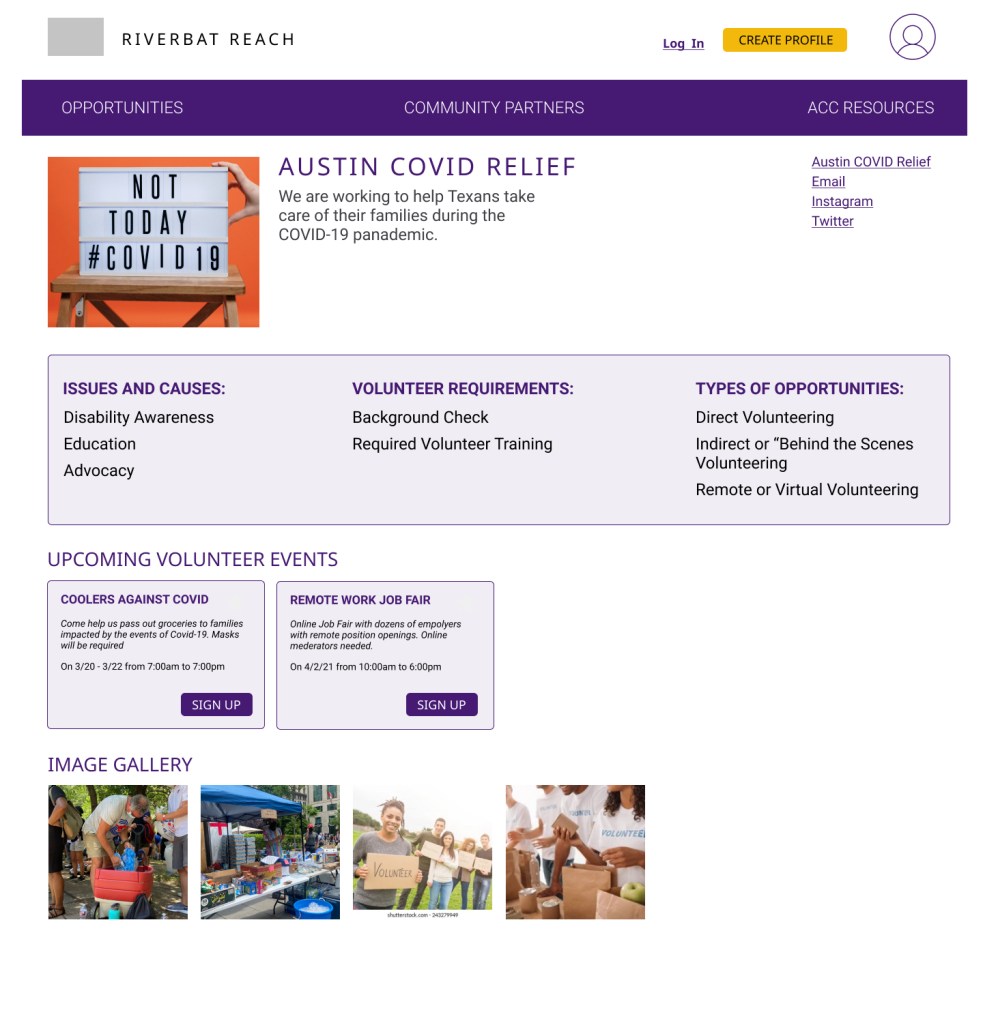 This option utilizes the Community Partners pages that is already in existence on Riverbat Reach website. Currently, there is just a long list of Community Partners on the page and students feel overwhelmed and abandon their task because they don’t want to click into each one to find out information on the organizations.