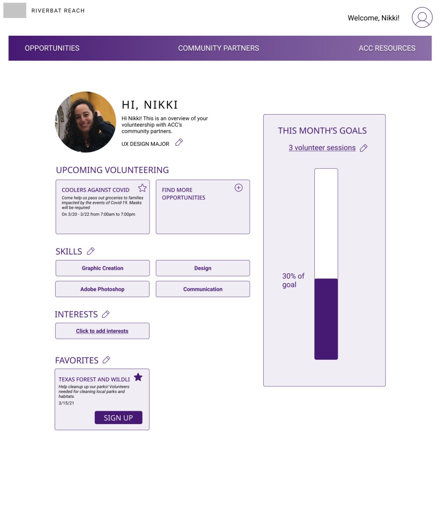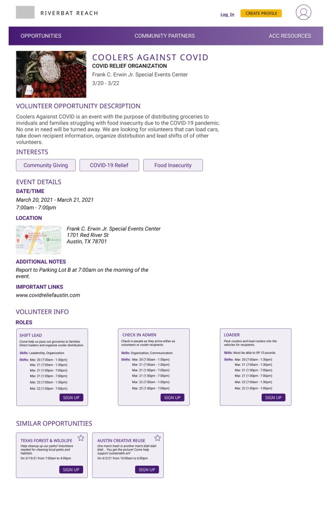 My team of 3 was tasked with creating an online hub that connects college students at ACC with volunteer opportunities within the Greater Austin Community. Our client, The Service Learning Department, facilitates internships and community service for credit within ACC.