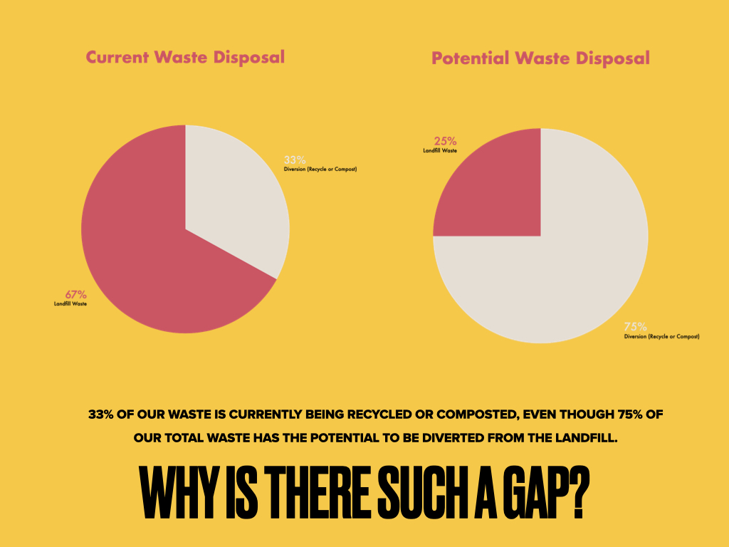 Landfills of rotting food and recyclable materials emit methane, a gas that is roughly 25 times more harmful than carbon dioxide.