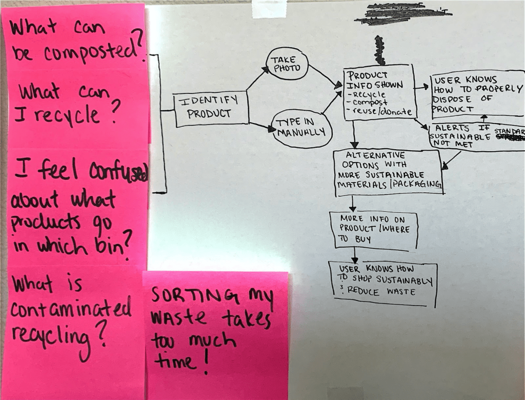 I conducted interviews with users within the target audience to get some insight into their thoughts and feelings on: their current waste management habits, reducing waste and being more conscious about what they throw away.
