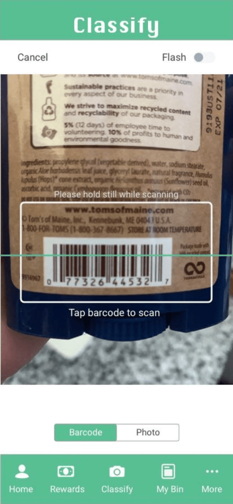 - Barcode scanning and photo recognition software allow users to quickly snap a picture of their waste and have it classified for them.