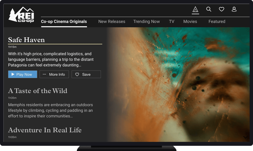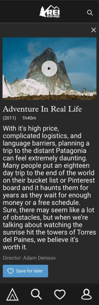 This case study focuses on how I applied REI’s existing design system to a novel content platform: a video streaming service. I was tasked with the visual design for the service in two formats: a remote-control based TV app and a mobile app.